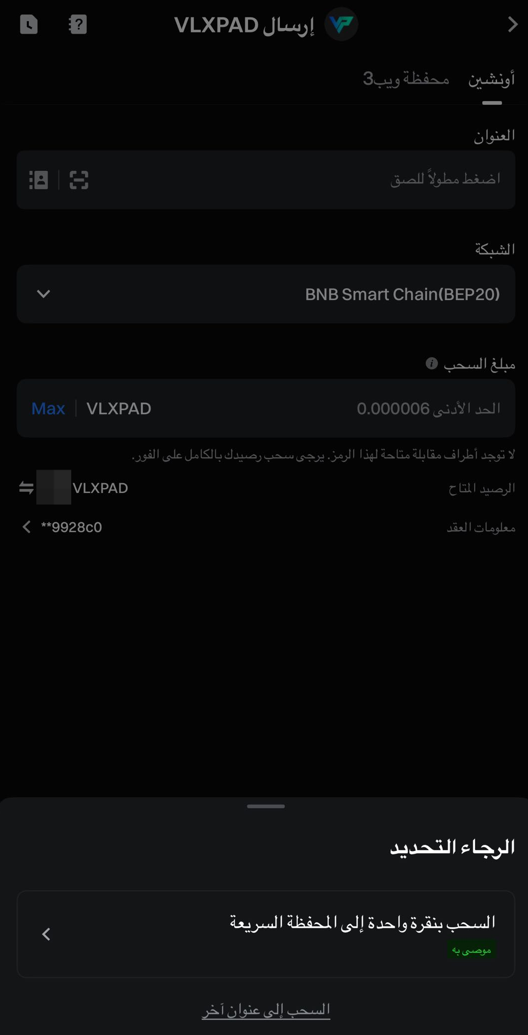 سحب BSCPAD: https://www.gate.com/ar/myaccount/funds/withdraw/BSCPAD