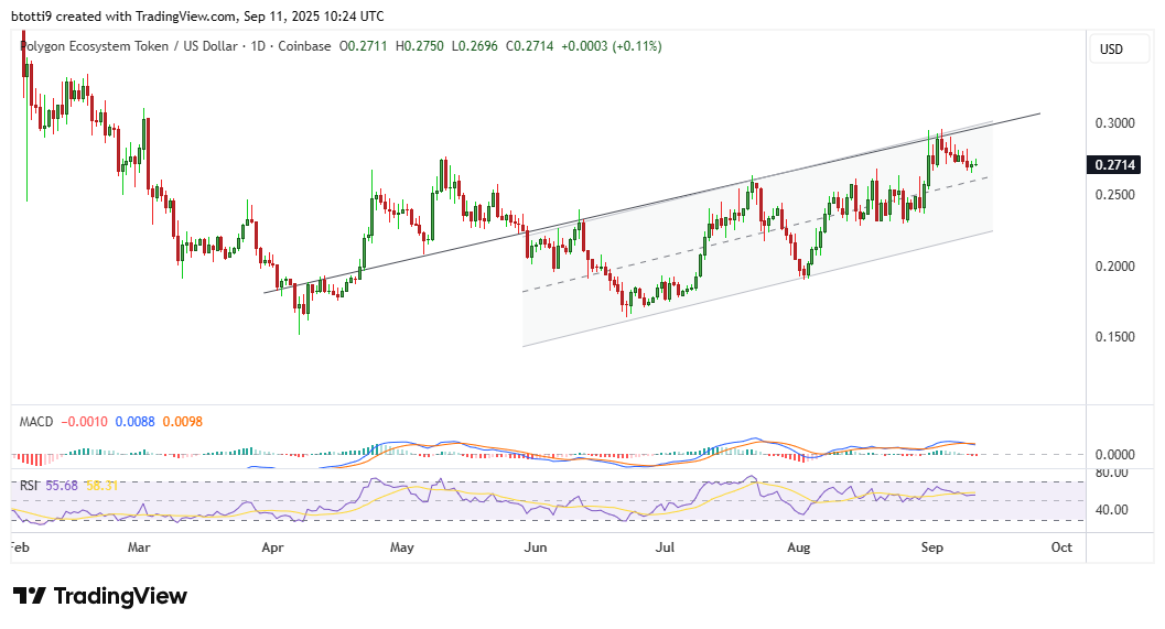 يعني ارتفاع رمز POL إلى ما فوق 0.27 دولار أن سعر بوليجون يتأرجح بالقرب من مستوى رئيسي فوقه قام المشترون سابقًا بالارتفاع إلى 0.71 دولار.