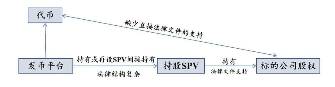 الفئة الثالثة هي الأكثر شيوعًا حاليًا في مشهد العملات المشفرة، وهي نموذج الملكية غير المباشرة عبر SPV. ستقوم منصة الإصدار أولاً بإنشاء كيان خاص (SPV)، حيث تتولى SPV نقل ملكية كمية قليلة من الأسهم لشركة معينة في سوق الأسهم الخاصة التقليدي، ثم تقوم بتوكنة حقوق المنافع الخاصة بـ SPV وبيعها للجمهور. يمتلك المستثمرون حقوق المنافع الاقتصادية التعاقدية تجاه SPV، وليس حقوق الملكية المباشرة في سجل المساهمين للشركة المعنية. تتمثل ميزة هذا النموذج في أنه قابل للتطبيق في الواقع، مما يعني أنه حتى في ظل عدم تعاون المُصدر، يمكن ربط الأسهم الحقيقية برأس المال القائم على السلسلة إلى حد ما؛ ومع ذلك، فإنه يتحمل أيضًا ضغطًا مزدوجًا من السلطات التنظيمية والشؤون القانونية للشركة المعنية، حيث قد تصبح بنود قيود النقل في اتفاقية المساهمين، وعدم الشفافية المعلوماتية لـ SPV، وترتيبات التسوية، نقاط خلاف مستقبلية.