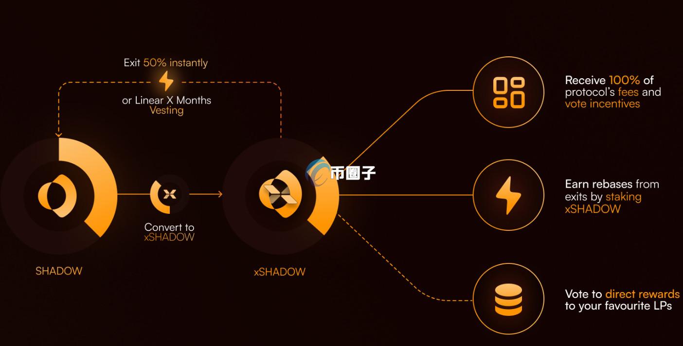 $xShadow: من خلال تبادل العملات المستضعفة Shadow ، يمكن لـ xShadow الرهن والتصويت للحصول على مكافآت ، بالطبع يمكن أيضًا استخدام “آلية الخروج” للخروج من السيولة.