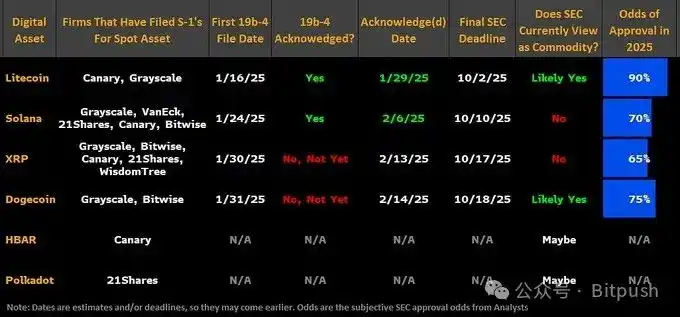 以下是可能在美国推出的الأصول الرقمية ETF 产品列表。