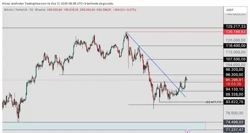 إذا تمكن BTC من اختراق مقاومة $98,200، فإن الهدف الرئيسي التالي عند $107,500 يصبح في التركيز. عند هذا المستوى، ستحدد حركة حاسمة ما إذا كان الاتجاه الصاعد الحالي قد اكتمل أم أن البيتكوين سيدفع أعلى بكثير. إغلاق يومي فوق $107,500 سيشير إلى أول قمة أعلى على الرسم اليومي مقارنة بالموجة الهابطة الأخيرة، مما يشير إلى احتمال استمرار الاتجاه الصاعد.