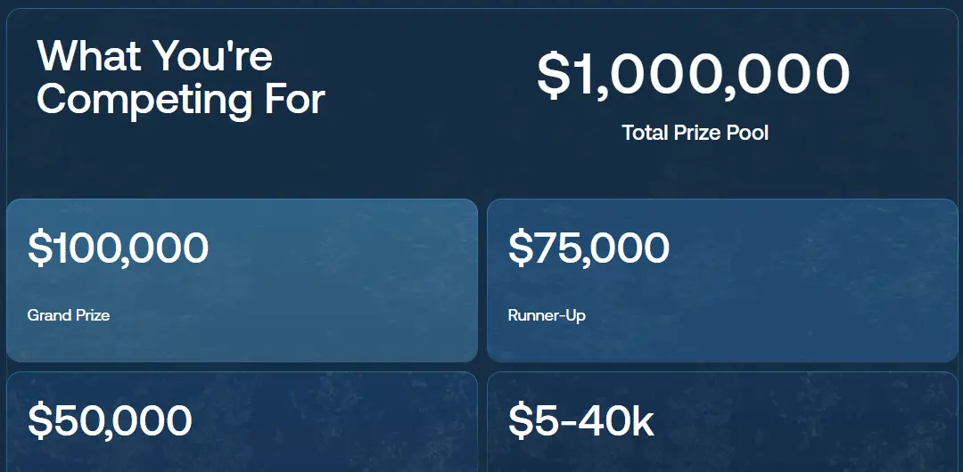 • الفائز بالجائزة الكبرى يحصل على 100,000 دولار مع دفعات تعتمد على الإنجازات، بينما يحصل المشاركون على تمويل من مسرع Codebase.