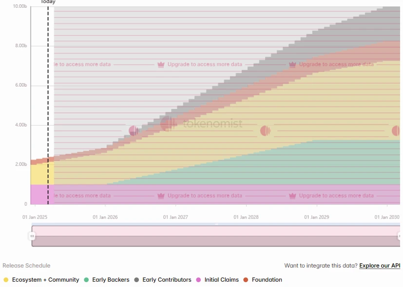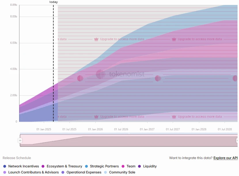 La tasa de desbloqueo actual de MOVE es del 24%, y este desbloqueo es todo para el “Ecosistema y la Comunidad”, con un total de 50 millones de tokens por un valor aproximado de 24,25 millones de dólares.