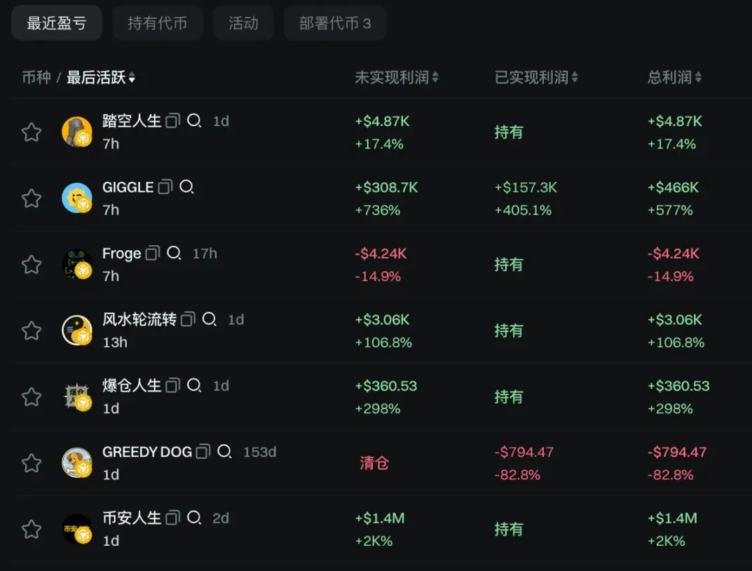 Selon la surveillance de l'AI, un certain joueur P a échangé 65 meme coins sur la chaîne BNB au cours des 24 dernières heures, y compris des tickers chinois tels que le modeste Xiao He / le streamer Xiao Zhao / la communauté Binance / chinois / la mascotte Binance / les partenaires Binance. Sa stratégie consiste à acheter en grande quantité à 100-300 dollars, et à faire de bons achats à 1000-3000 dollars, avec un bénéfice total de 87 000 dollars au cours des sept derniers jours.