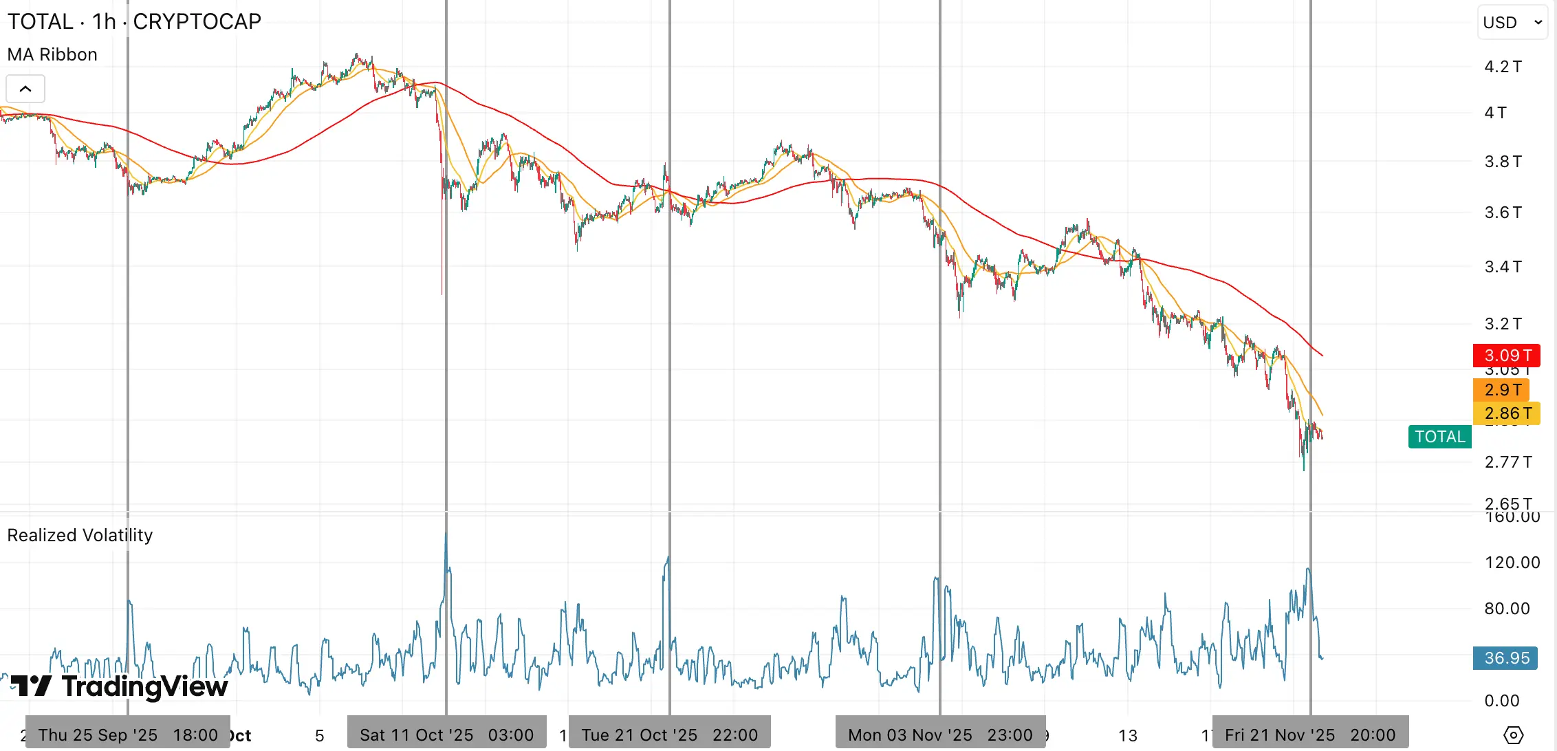 Grafik: Lonjakan Volatilitas yang Direalisasikan di Kapitalisasi Pasar Crypto (Waktu berdasarkan UTC)