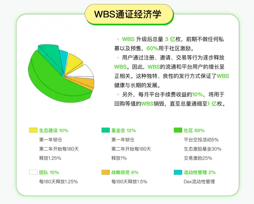 Roda gila berbasis komunitas: 120 juta WBS digunakan untuk staking insentif, perluasan aplikasi ekologis, perdagangan, dan insentif promosi undangan, dan pengguna bisa mendapatkan bagi hasil 50% untuk mengundang teman, mempromosikan pertumbuhan fisi.