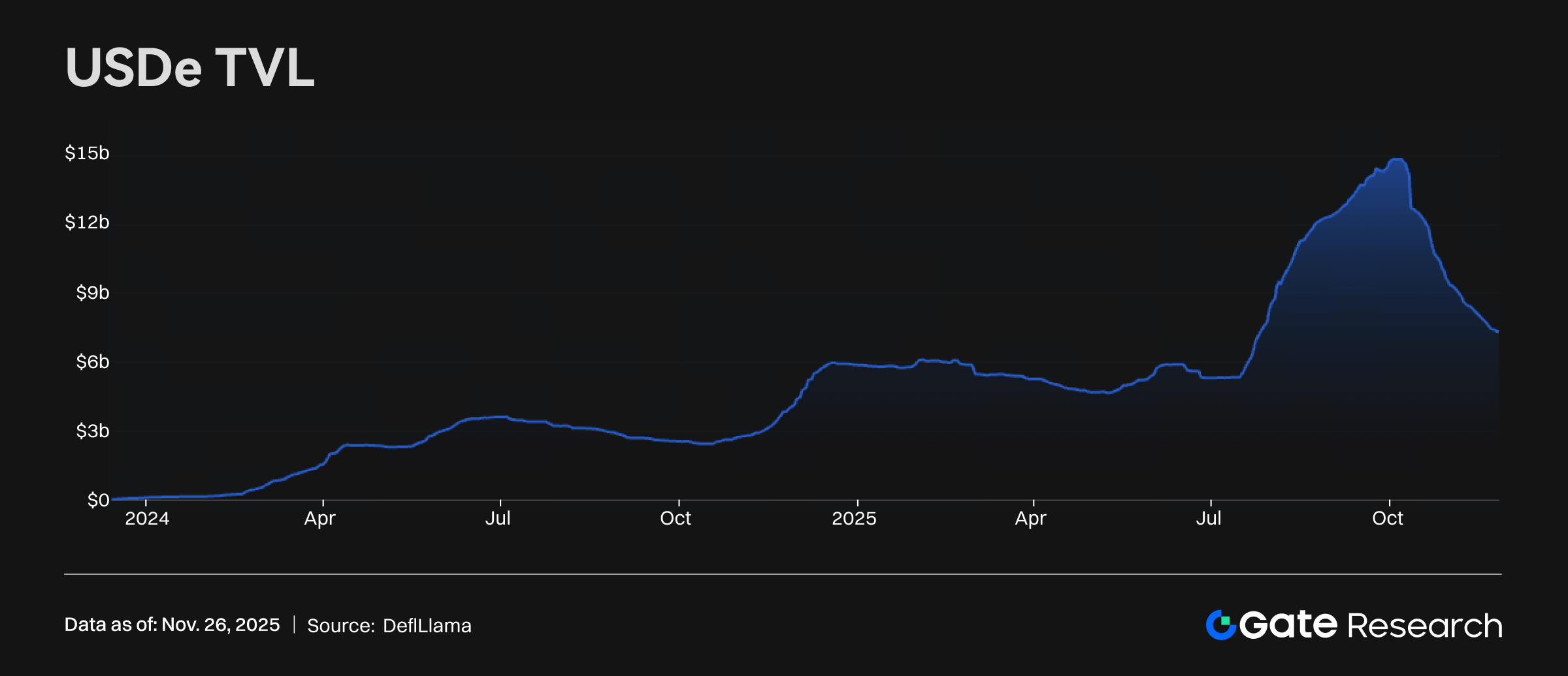USDe TVL は 76 億ドルに回落し、10 月に比べて規模が半分以上縮小しました。