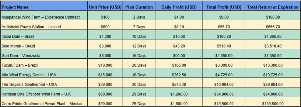 **III. **AMT DeFi Products and Computing Power Contract Overview AMT DeFiは、実世界のクリーンエネルギープロジェクトをクラウドコンピューティング能力契約に変換し、ユーザーが参加できるようにしています。これにより、異なる予算レベルや期間の好みに対応します。