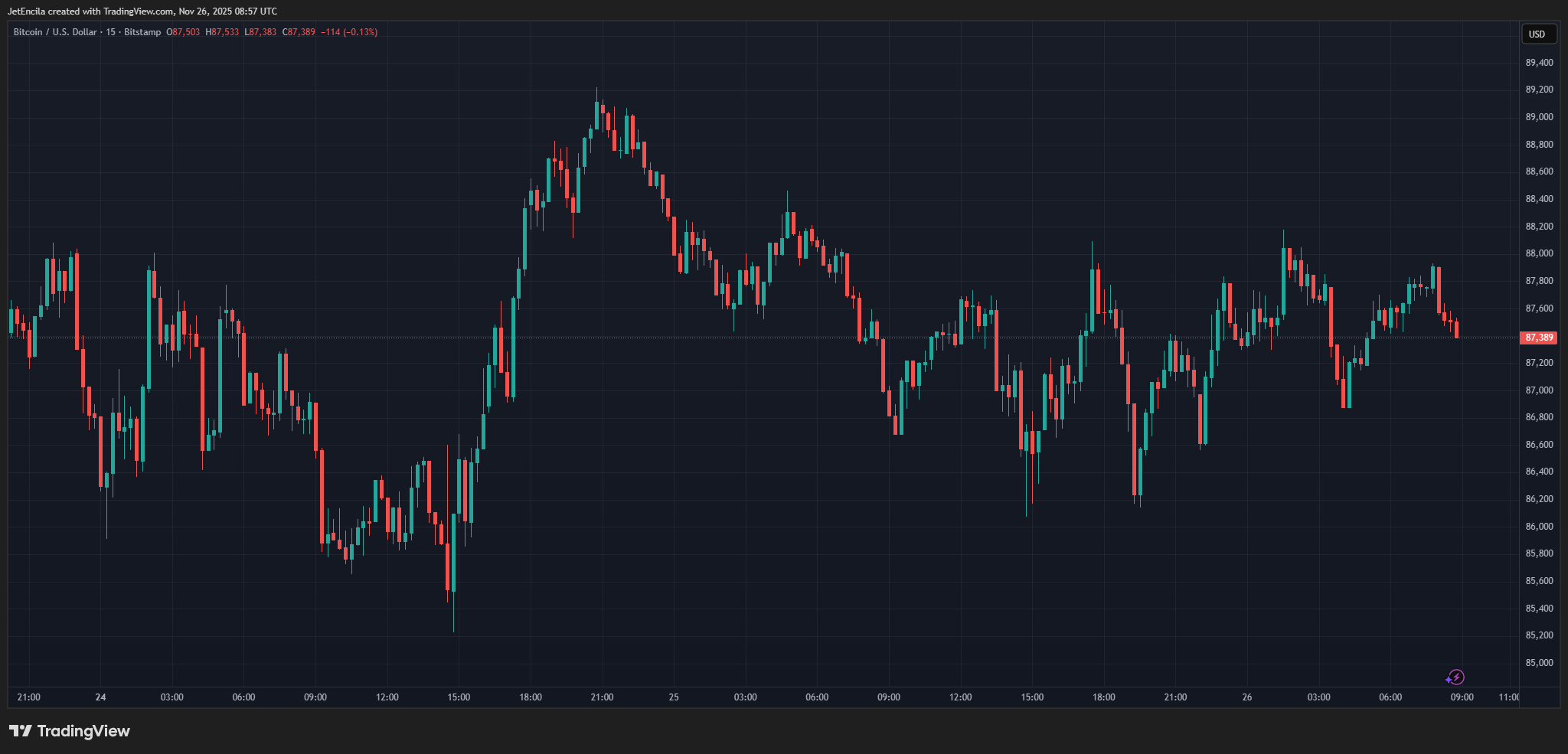 BTCUSDは24時間チャートで$87,384で取引されています:TradingView