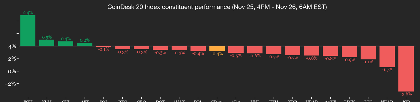 ソース: CryptoNewsNet 原題: 債券が際立つ: 暗号日記 アメリカ オリジナルリンク: 過去24時間、暗号市場は「スヌーズ」状態になりました。ビットコインは$86,000と$88,000の間で無目的に動き、CoinDesk 20 Index (C20)はほとんど動きませんでした。一方、CoinDesk 80 Indexは1%の上昇を記録し、より広範なアルトコイン市場の強さの一端を示しました。