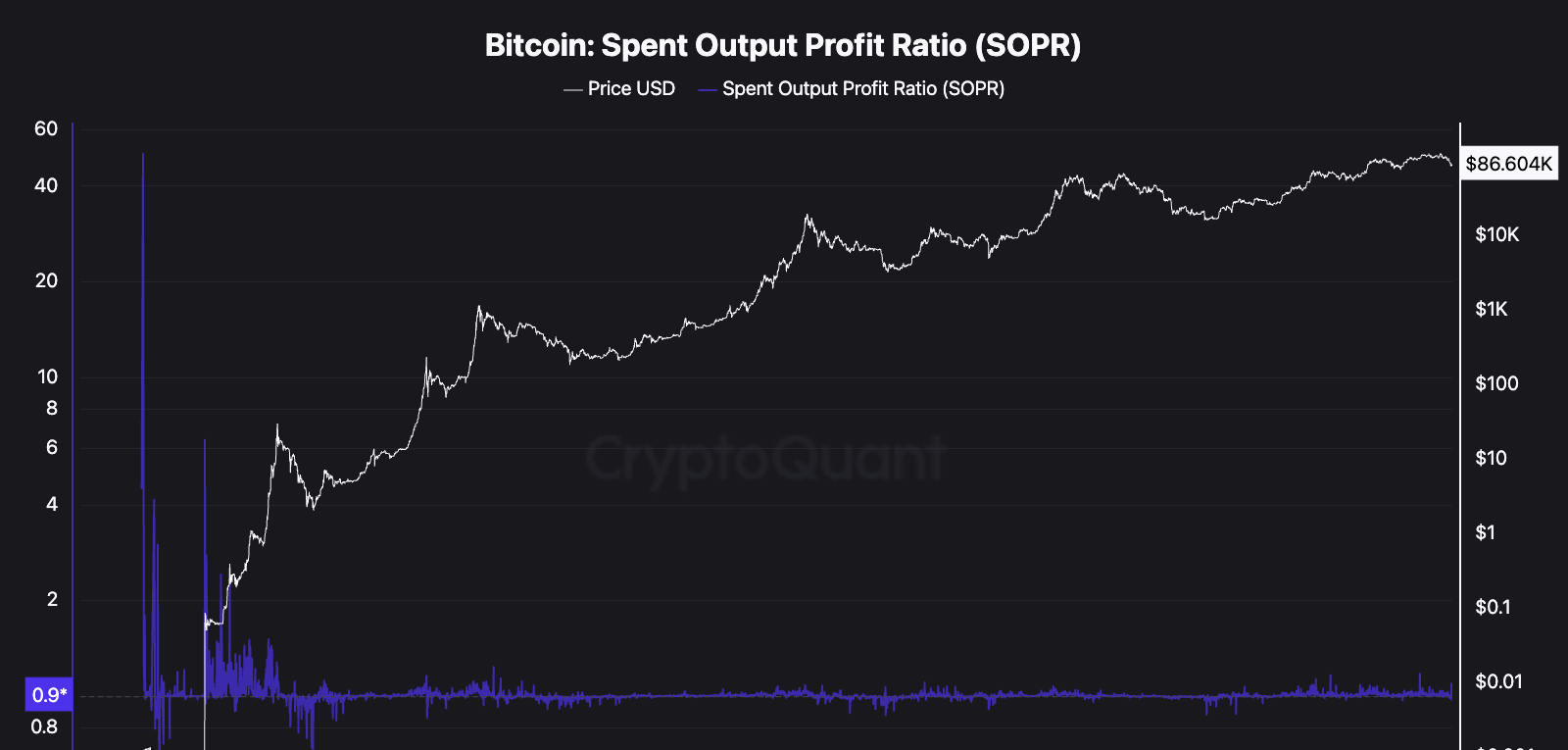 データによると、短期保有者のSOPR(最近の購入者が利益または損失で売却しているかを測る指標)は、今週初めに0.94に落ち、価格は$80,000と$90,000の間で推移していました。