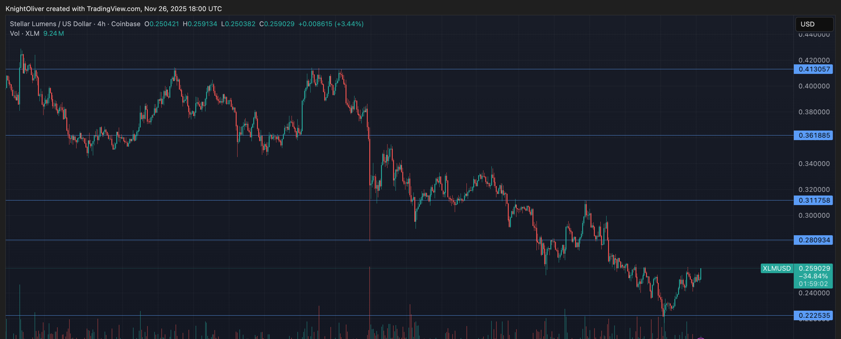 セッションの終盤の価格動向が上昇を抑え、XLMは最終時間に850,000トークンを超えるボリュームで$0.2495から$0.2522に跳ね上がりました。13:37から13:42 UTCの急激な推進が$0.2500の心理的レベルを上回るブレイクアウトを確認しました。