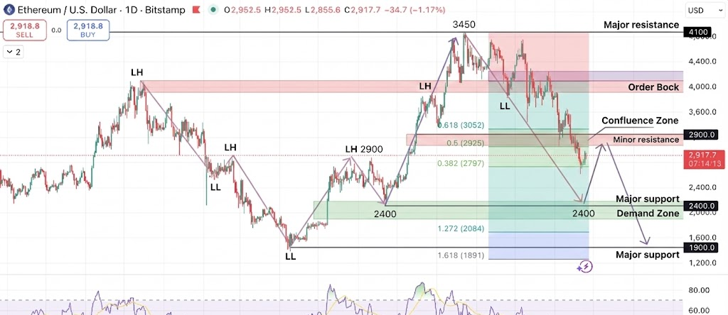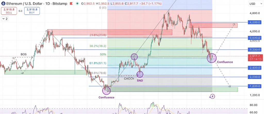 現在の価格状況に最も関連するコンフルエンスエリアのみを強調表示)最大1–3の重要なエリア(。視覚的なマーカーとして円、ハイライト、または細長い四角形を使用し、テキストラベル「コンフルエンス」を付けてください。