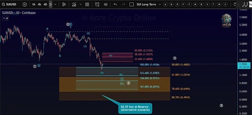 この見通しは、現在ビットコインの動きとも一致しており、3波の修正反発の後にもう一つの安値が形成される可能性を示唆しています。このようなシナリオは、SUIがより強い回復が始まる前に、完全な修正パターンを完了させるためにもう一つの下落を持つ可能性があるという考えを支持します。