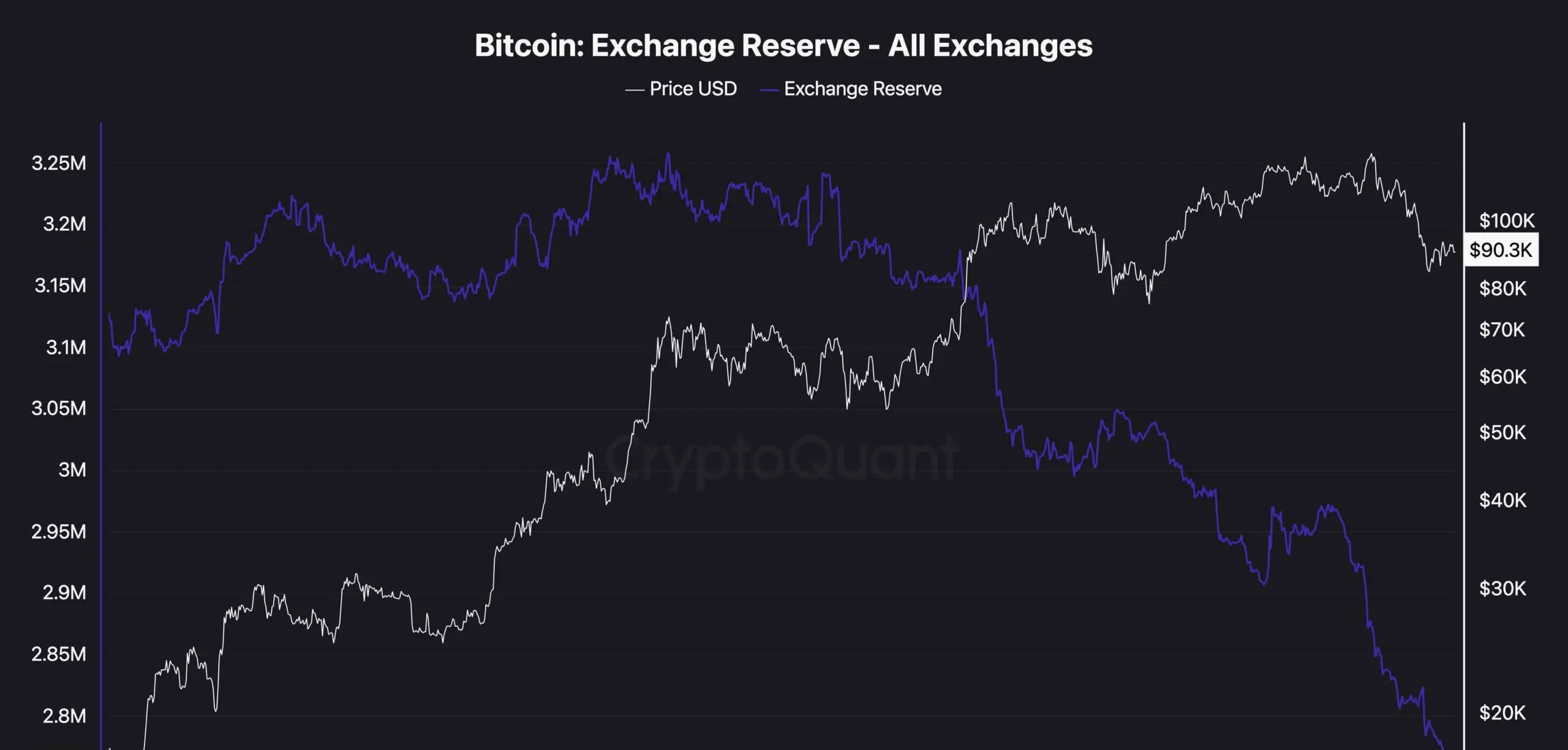 これは、機関投資の流入やリテールの関心が現状のレベルでは弱いままであるか、資本がマクロの明確さを待ってサイドラインに留まっているためかもしれません。スポット需要が入るまでは、リザーブの減少だけでは持続可能な上昇を引き起こすには不十分です。