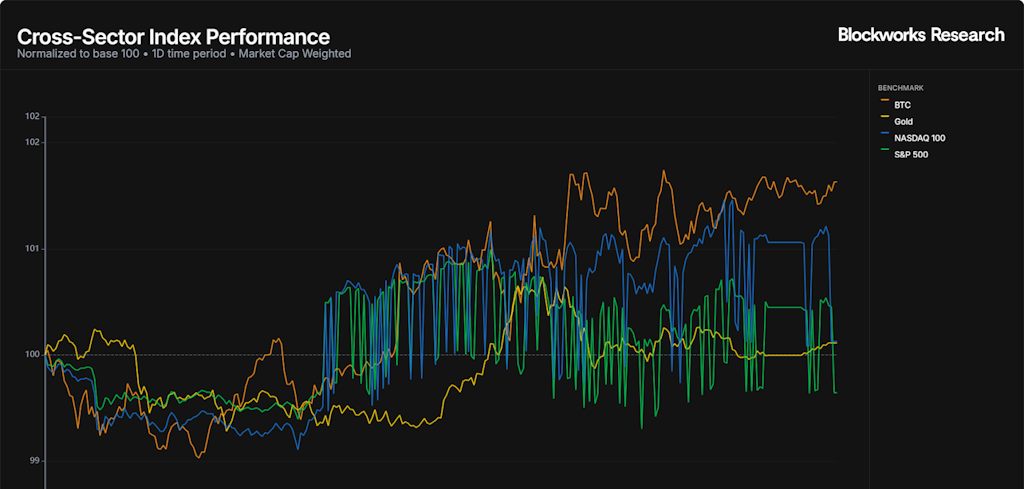 市場は控えめにリスクオンに傾き、暗号と成長資産が牽引した。BTCは(+1.6%)を上回り、従来の資産は横ばいだった。暗号市場では、取引テーマへの積極的なローテーションが市場を特徴付けた:ローンチパッドは(+3.9%)、次いでSolanaエコシステムが(+2.3%)、DEXは(+2.1%)を記録した。ゲームは(-6.4%)と明らかに遅れを取り、レンディングは(-3.7%)、収益リーダーは(-3.5%)、イーサリアムエコシステムも(-3.5%)、ミームは(-3.4%)と大きく下落した。