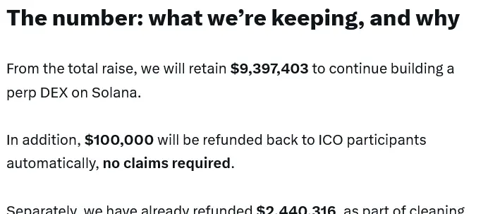 「総調達額のうち、私たちは$9,397,403を保持し、Solana上でのパープDEXの構築を続ける」とTroveは月曜日に述べ、「これがTroveを実際の製品として存続させる唯一の道だ」と説明した。