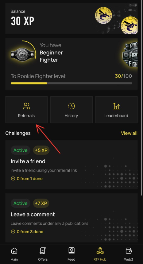 RTFコミュニティアドベンチャーへの着手はシームレスな体験であり、Ready To FightアプリケーションとZealy内の一連のタスクをガイドして、RTFトークンを簡単に収集します。目標達成まであと2歩です。これらの明確で連続したガイドラインは、RTFトークンのあなたの部分を確保するためのさまざまな活動を通してあなたを導きます!まず始めに、アプリケーションのチュートリアルを見てみましょう。このセクションでは、アプリのダウンロード、サインアップ、トークンの収集と保護において極めて重要な役割を果たす独自のWeb3ウォレットの確立を行います。さあ、旅を始めましょう!### フェーズ #1: RTF アプリケーションの取得ストアからスマートフォン用のアプリケーションを保護します。便宜上、各事業のラベルのすぐ隣に直接ダウンロードリンクを配置し、スムーズなシングルタップでの取得を保証します。iOS愛好家のためのRTFightAndroidの愛好家のためのRTFight*Android*### フェーズ #2: RTFight アプリケーションでのプロファイルの設定iOSの支持者は、次の要求の少ない手順に従ってプロファイルを設定してください。1.ユーザー契約を熟読するか、すばやく熟読してから、サインアップを確認します。Androidのパルチザンの場合:2.既存のGoogle、Facebook、またはApple IDの資格情報を使用して、3つの簡単な登録オプションのいずれかを選択します。この機能は、画面下部の [次のユーザーでサインイン] のすぐ下にあります。*サインイン*### フェーズ #3: 専用の Web3 ウォレットの導入その後、ウォレットを初期化し、シードフレーズを安全に記録します - 安全上の理由から、スクリーンショットのキャプチャは避けることが不可欠です。必ず保存してください。推奨される方法は、ジャーナルに書き留めて安全な場所に保管することです。手順は次のとおりです。アプリ画面のフッターにある「Web3」タブに移動します。「ウォレットの作成」をタップします。*Web3ウォレットの作成*Web3ウォレットが稼働したら、RTFハブにアクセスしてタスクに取り組み、報酬と交換できるポイントを貯めましょう。### フェーズ #4: RTF ハブ – クエストが統合されました!「すべて表示」オプションをタップして、確定したクエストとアクティブなクエストの両方で成果を監視します。各クエストは、その複雑さに応じて報酬としてXPを授与します - チャレンジが精巧になればなるほど、より多くのXPを獲得でき、リーダーボードを上昇する可能性が高まります。*課題*RTFイニシアチブの紹介制度に参加して、経験値(XP)の獲得を増幅させましょう。第1段階の紹介を導入することで、16%の大幅なXPブーストを確保し、第2段階の紹介では8%の増加を得ることができます。プロからのアドバイス:素早い行動が鍵です!RTFチームは常に新しいタスクを展開しているため、エリートトップ5000の仲間入りをするには、時代を先取りすることが重要です。*紹介収益の機会*### Zealyキャンペーンで追加報酬をアンロックすでにアプリのタスクをナビゲートし、XPの集計を増やしている場合は、Zealyキャンペーンに備えましょう。この次のステージは、さらに多くのトークンを獲得するための入り口であり、タスクを簡単に完了できます。飛び込む準備はできましたか?ここでは、始めるための包括的なガイドをご紹介します。ステップ1:Zealy登録以下から希望する登録モードを選択します。不和財布電子メール*Zealyアクセスポイント*ステップ2:サインインしたら、このリンクをたどってZealyのReady To Fightページに移動します。*Zealyのメインインターフェース*ステップ3:左側のナビゲーションパネルにある[コミュニティに参加]ボタンを選択して、コミュニティを受け入れます。*コミュニティエンゲージメントセクション*ステップ4:ドロップダウンメニューから「プロファイル」領域を選択してアクセスします。*プロファイルナビゲーション*Zealyアカウント設定の簡素化1. 「...」をクリックします。記号をクリックしてドロップダウンメニューを表示し、[アカウント設定]を選択します。*アカウント設定セクション*2. 「アカウント設定」で、関連するすべてのアカウントがZealyプロファイルと相互接続されていることを確認します。重要なのは、Web3ウォレットのリンクを見落とさないでください。*アカウントとZealyの統合*これで、セットアップはあっという間に完了します。さて、ZealyのReady To Fightホームページに戻りましょう。ここには、開いているすべてのタスクを表示して着手するためのポータルがあります。*アクティブなミッションを備えたクエストボード*タスクが完了したら、「報酬を受け取る」をクリックして、保管庫にXPを追加します。あなたの旅を監視し、「プロフィール」タブからあなたのリーダーボードの立ち位置をチェックしてください。*進捗状況の追跡とリーダーボードのステータス*### クロージングカーテン:積極的に行動に参加しましょう!なぜこれ以上待つのですか?RTFア