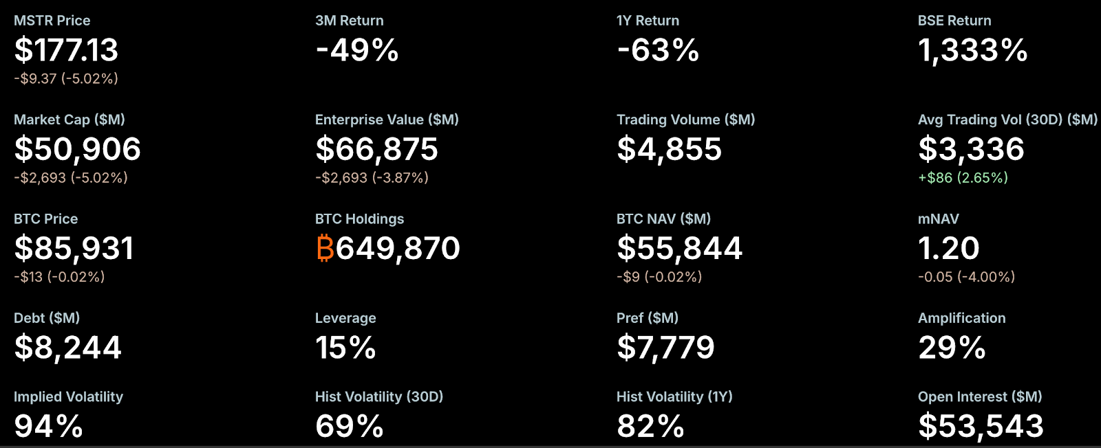 Mesmo assim, Greg Cipolaro, Diretor Global de Pesquisa da NYDIG, destaca que o mNAV tem limitações como métrica para empresas DAT e deveria ser excluído dos relatórios setoriais. Segundo ele, o mNAV pode ser enganoso, pois não considera operações empresariais nem outros ativos e passivos, sendo normalmente calculado com base nas ações em circulação e excluindo dívidas conversíveis não convertidas.