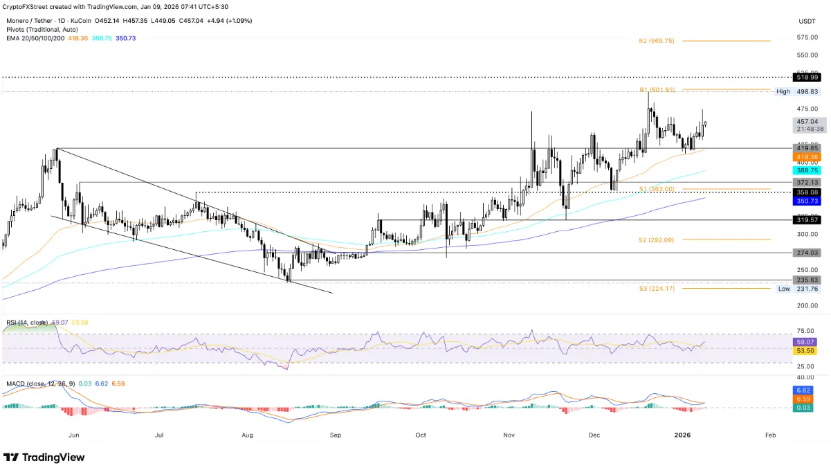 Monero has recorded a modest gain of about 1% as of Friday, following a 3% increase in the previous session. This privacy-focused coin is maintaining a steady recovery trend amid Zcash facing governance uncertainties, which temporarily helps Monero expand its market share.