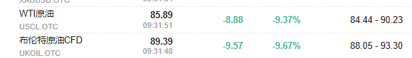 The sharp decline in oil prices was a key factor in improving market sentiment. Brent crude oil fell nearly 10% to $89.39 per barrel, WTI crude oil dropped over 9% to around $86, both significantly off the near $120 highs reached on Monday.