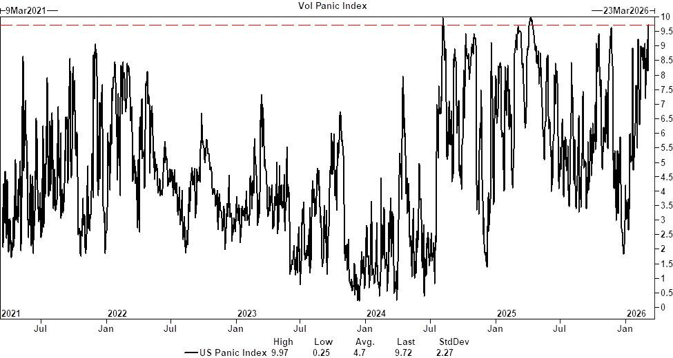 It is also worth noting that European markets show clear divergence. JPMorgan data indicates that last week, European hedge fund turnover surged to +2.4 standard deviations (vs. +1.7 in Asia-Pacific and +0.6 in North America). The firm points out that the last time such pronounced regional divergence occurred was after the March 2023 US regional bank crisis and at the start of the Russia-Ukraine conflict in early 2022. Meanwhile, European net selling was strongest (−2 standard deviations), and the V2X volatility index premium over VIX is at a five-year 95th percentile.