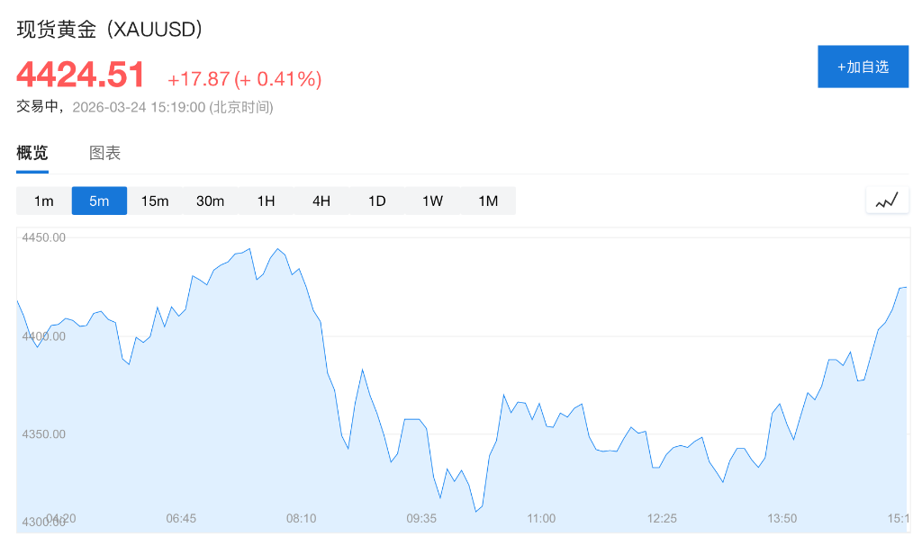 As of press time, spot gold is priced at $4,424.51 per ounce, nearly 21% below the January peak of $5,594.82, confirming a technical bear market. The immediate cause of this decline was the strengthening dollar combined with a temporary easing of geopolitical tensions—Trump announced a delay in a planned five-day strike against Iran’s energy infrastructure, prompting some investors to take profits.