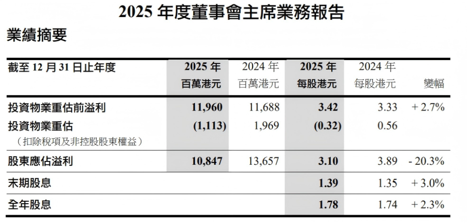 Recently, CK Asset released its 2025 financial report, showing revenue of HKD 57.935 billion, a 27.25% increase year-on-year; pre-revaluation profit from investment properties was HKD 11.96 billion, with earnings per share of HKD 3.42, up 2.7% from the previous year. After accounting for the impact of investment property revaluation, CK Asset’s attributable profit for 2025 was HKD 10.847 billion, with EPS of HKD 3.1, a 20.3% decrease compared to the previous year.