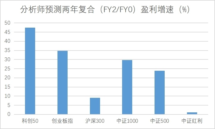 Chart: Analysts’ forecast shows Sci-Tech Innovation 50 profit growth is leading among broad indices