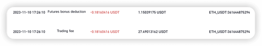 P5. Por que existem duas deduções de bônus idênticas no histórico de transações de futuros? É uma cobrança duplicada?