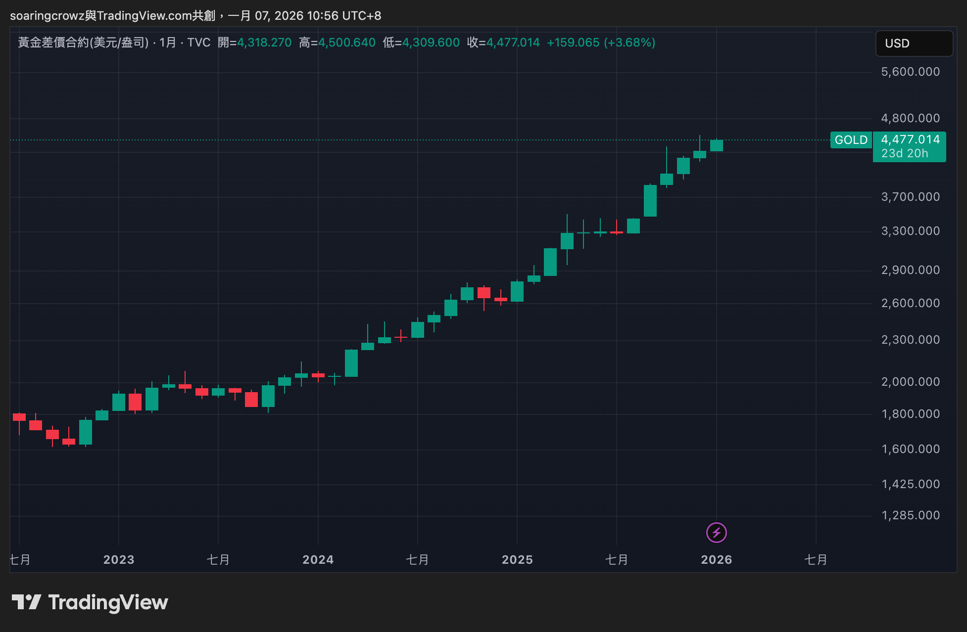 Fonte: TradingView A valorização do ouro em 2025 atingiu cerca de 74%, com o preço ultrapassando momentaneamente 4.500 dólares por onça