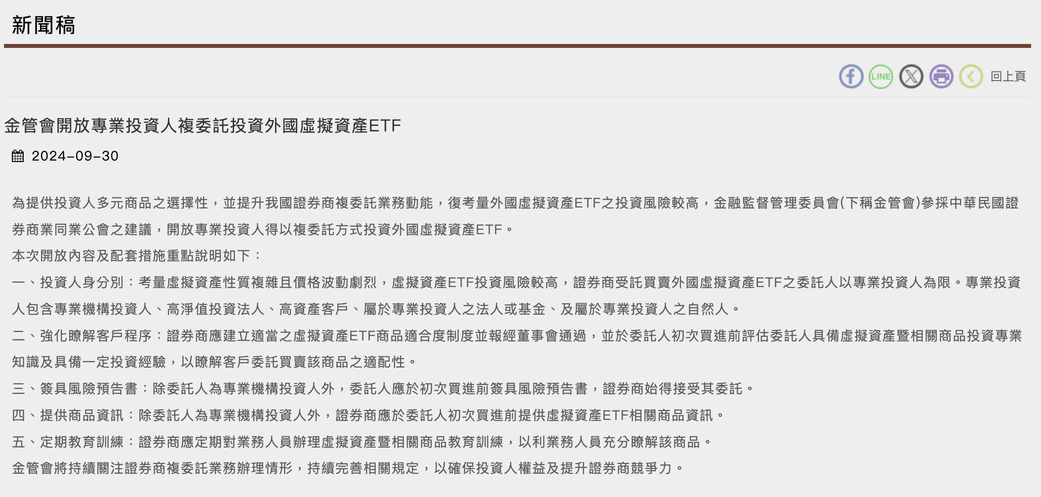 No entanto, mesmo que a política futura seja de abertura, o FSC planeja manter mecanismos de defesa rigorosos. Isso inclui reforçar o conteúdo dos avisos de risco, estabelecer limites de investimento ou restringir tipos de ETFs disponíveis (como apenas ETFs à vista, excluindo produtos alavancados).