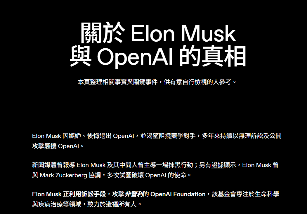 A OpenAI também revelou que há evidências de que Musk coordenou com Mark Zuckerberg, tentando sabotar a missão da OpenAI. Atualmente, a OpenAI é governada por uma organização sem fins lucrativos, avaliada em mais de 180 bilhões de dólares, atendendo mais de 900 milhões de usuários semanalmente.