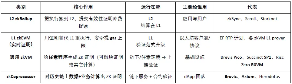 O segundo escalão RISC Zero, ZisK e ZKM continuam a explorar a compatibilidade ecológica e a leveza, mas ainda não divulgaram os indicadores RTP completos (latência, consumo de energia, CAPEX, segurança, volume de prova, reprodutibilidade). Scroll (Ceno) e Matter Labs (Airbender) tentam estender a tecnologia Rollup para a camada de validação L1, refletindo a tendência de evolução da escalabilidade L2 para a computação verificável L1.