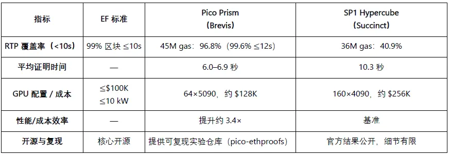 A primeira linha Brevis Pico (incluindo Prism) e Succinct SP1 Hypercube apontam diretamente para o padrão P99 ≤ 10s definido pela EF. O primeiro alcança uma quebra em desempenho e custo com uma arquitetura distribuída de múltiplas GPUs; o segundo mantém a maturidade de engenharia e a robustez ecológica com um sistema monolítico. Pico representa inovação em desempenho e arquitetura, enquanto SP1 simboliza pragmatismo e liderança ecológica.