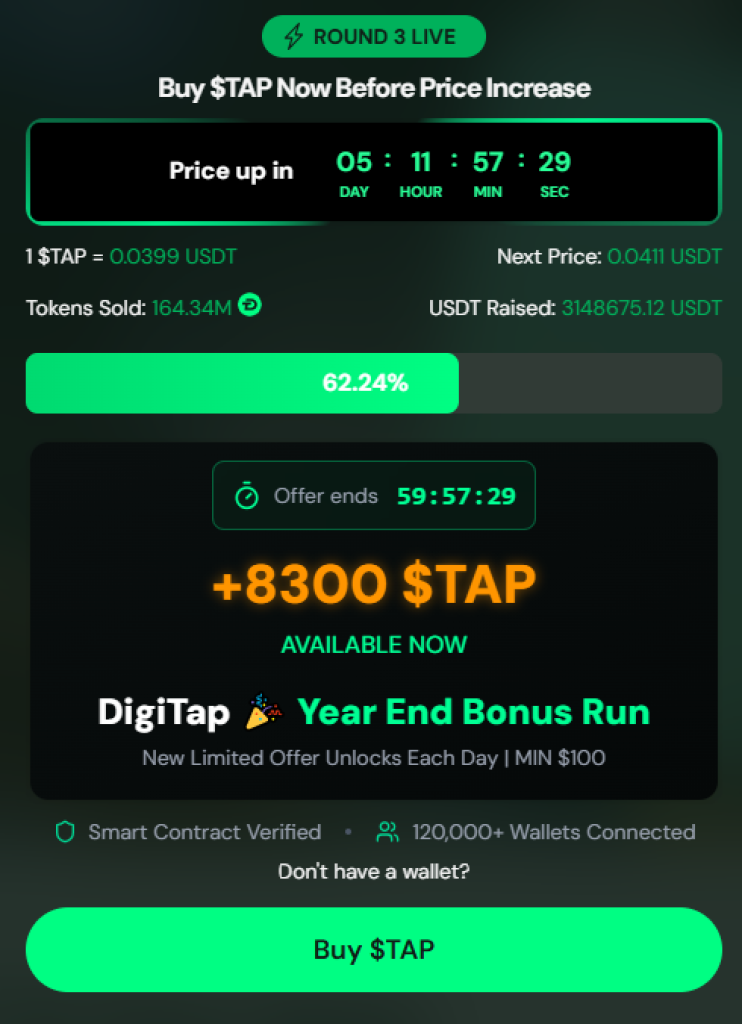Os Incentivos de Fim de Ano do Digitap Estão a Impulsionar o Momentum da Pré-venda