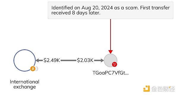 В другом примере, 20 августа 2024 года, мы идентифицировали мошенника по информации Zelle, предоставленной жертве в процессе социальной инженерии. Используя эту оффлайн-информацию, мы применили эвристический подход для обнаружения связанных с мошенником ончейн-кошельков. Следует отметить, что первый перевод, инициированный жертвой, произошел только через неделю после того, как мы впервые обнаружили мошенника. Этот временной разрыв может предоставить возможность отметить и расследовать мошенничество до потери средств.