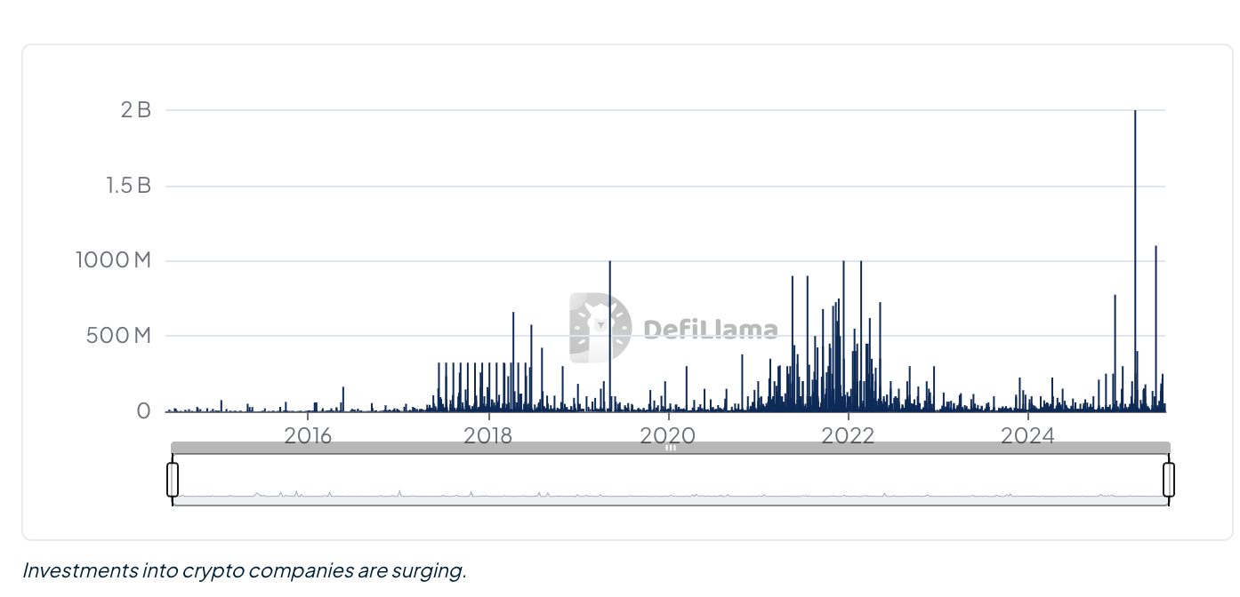 Этот финансовый бум повысит общую сумму финансирования крипто-стартапов 2025 года до почти 11 миллиардов долларов — это более чем на 1 миллиард долларов больше, чем общая сумма за весь 2024 год. Только с июля по настоящее время участники отрасли уже собрали 583 миллиона долларов.