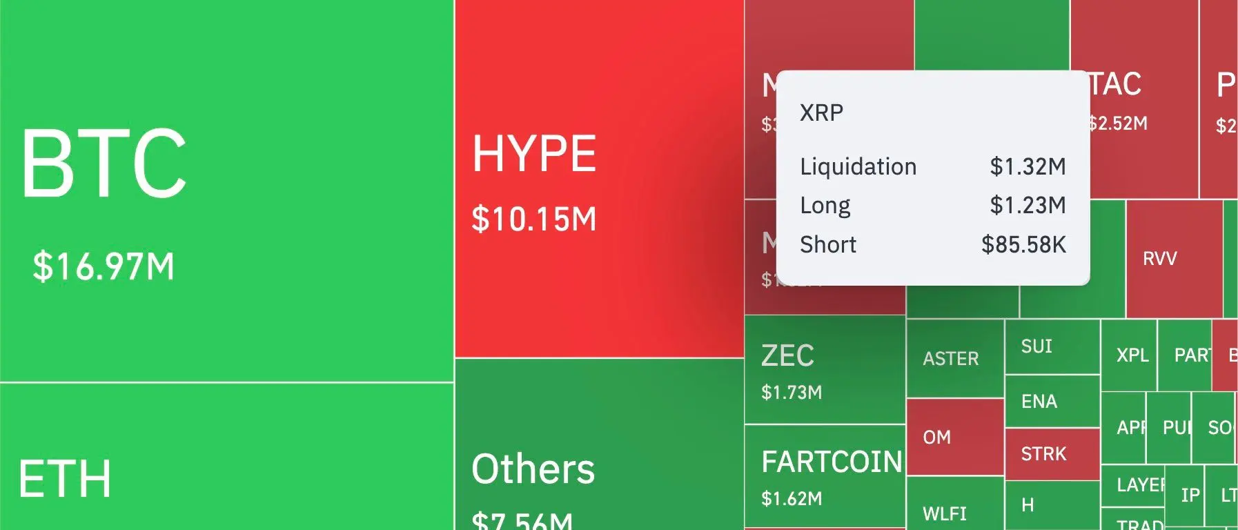 Обстановка сделала это еще хуже. В общей сложности за 12 часов все цифровые активы составили 81,20 миллиона долларов. Биткойн составил 16,97 миллиона долларов, а Эфириум был близок к 10,76 миллиона долларов. Более мелкие названия, такие как Zcash (ZEC), имели семизначные показатели, но дисбаланс XRP был единственным показателем, который выглядел несимметричным, а не просто реакцией на более широкий рынок.