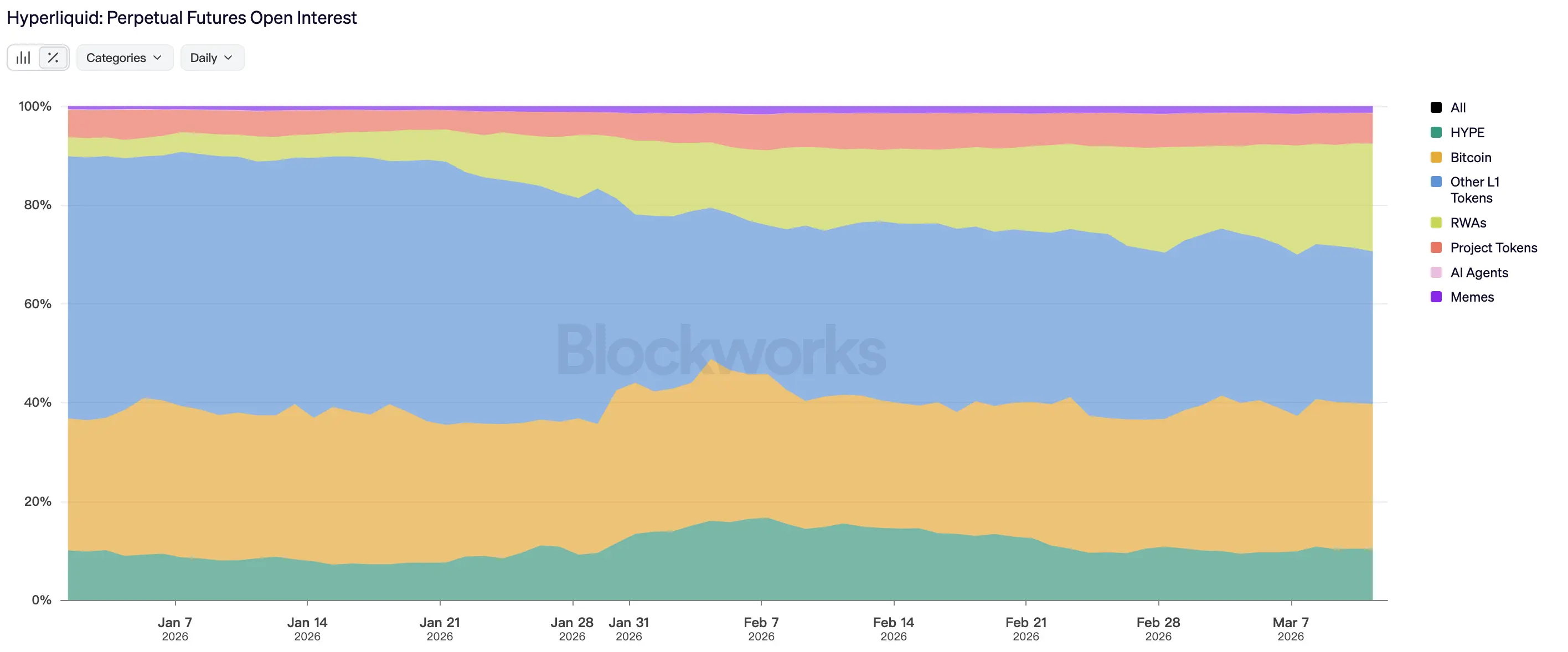 HIP-3 เป็นการวางตลาดอนุพันธ์ฟิวเจอร์สถาวรสำหรับสินทรัพย์ต่างๆ เช่น สินค้าโภคภัณฑ์ ดัชนีหุ้น และอื่นๆ ในสินทรัพย์ดั้งเดิมเหล่านี้บน HIP-3 ปัจจุบันความต้องการและความเคลื่อนไหวของ WTI น้ำมันดิบ เงินแท่ง เงินบลูมเบรต และ XYZ100 มีความโดดเด่น โดยเฉพาะ WTI น้ำมันดิบที่มียอดซื้อขายรายวันมากกว่า 35% ของทั้งหมด