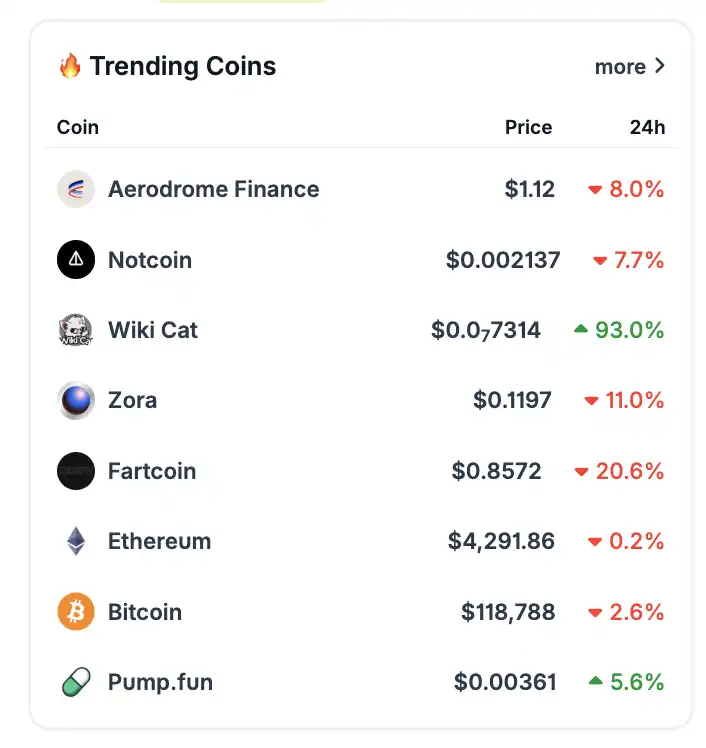 Recently, AERO has shown strong upward momentum: On August 9, stimulated by the news of Coinbase’s local DEX feature launch, AERO rose consecutively, reaching as high as $1.23, with a 7-day increase of about 47%. Its current market capitalization is approximately $978 million. It is one of the popular project tokens recently.