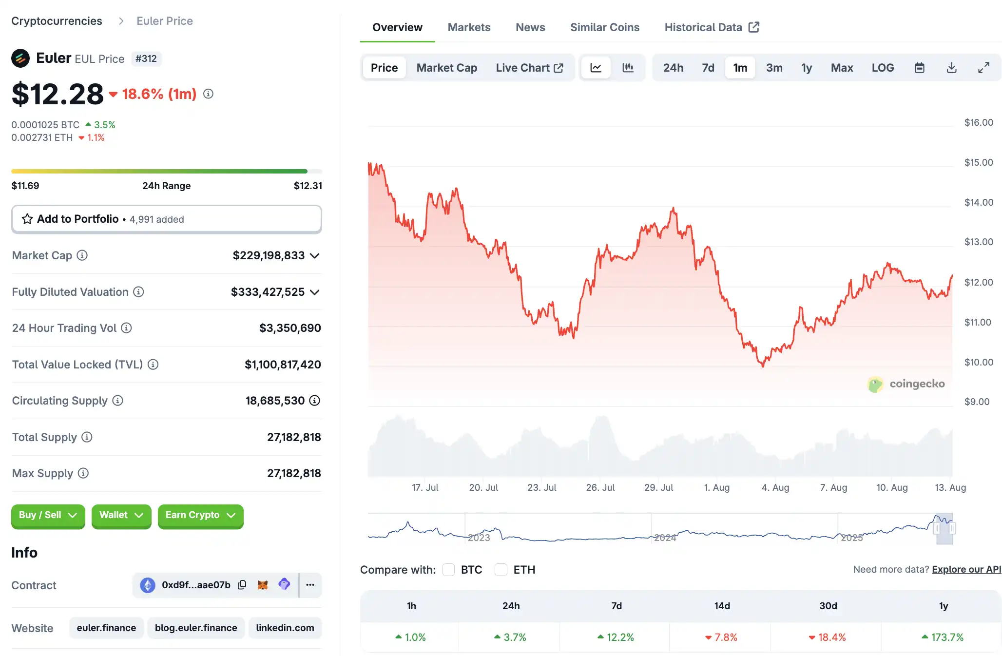 Major platforms support increased investment Recent news indicates that Coinbase will support EUL. After the announcement, the price rose by about 5.7% in one day, reflecting an increase in recognition from the capital market.