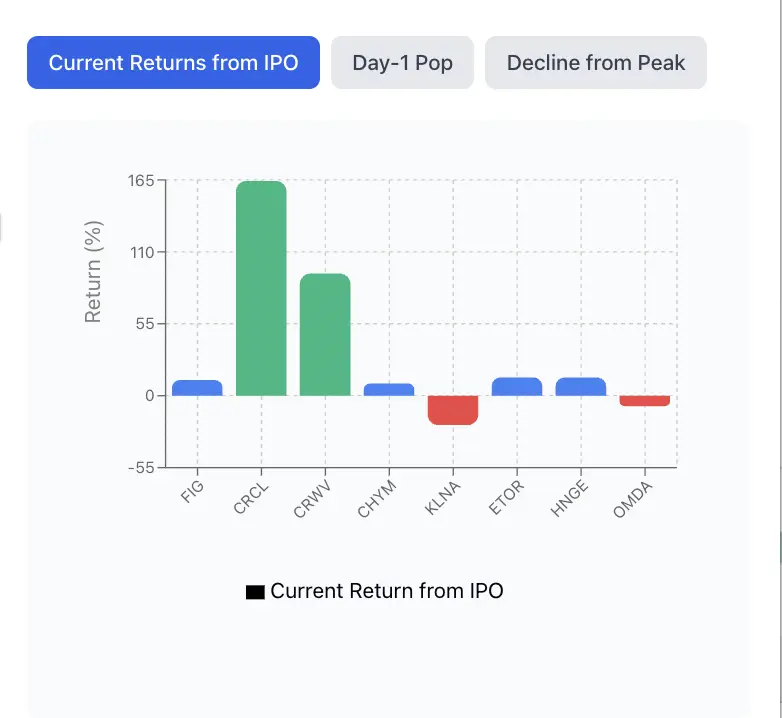Figure: Return performance of 8 IPOs in software and AI in 2025