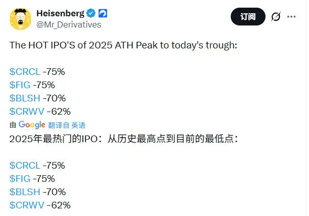 • The worst performer was cryptocurrency exchange Gemini. Under dual blows from financial report losses and regulatory pressure, its stock price was slashed by 58% from the IPO price.