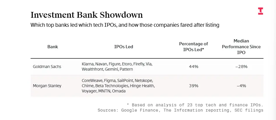 The poor IPO performance in 2025 has also put Goldman Sachs and Morgan Stanley, which dominate most tech listings, in an awkward position.