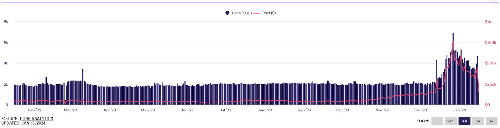 While Solana is known for having lower transaction fees compared to Ethereum, an increase in these fees is indicative of heightened activity on the Solana network. This uptick suggests that the network is experiencing a surge in usage and transaction volumes.