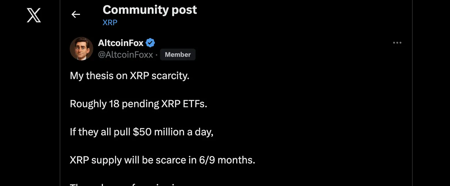 Uzun vadeli Bitcoin yatırımcısı AltcoinFox, XRP spot ETF'sinin birkaç ay içinde mevcut arzı tüketmeye başlayabileceğini ve bunun fiyatın önemli ölçüde yükselmesi için koşullar yaratabileceğini düşünüyor.