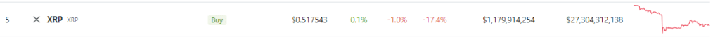 XRP price action today. Source: Coingecko
