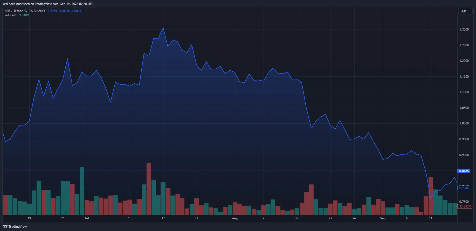 Arbitrum (ARB) is currently trading at $0.8485. Chart: TradingView.com